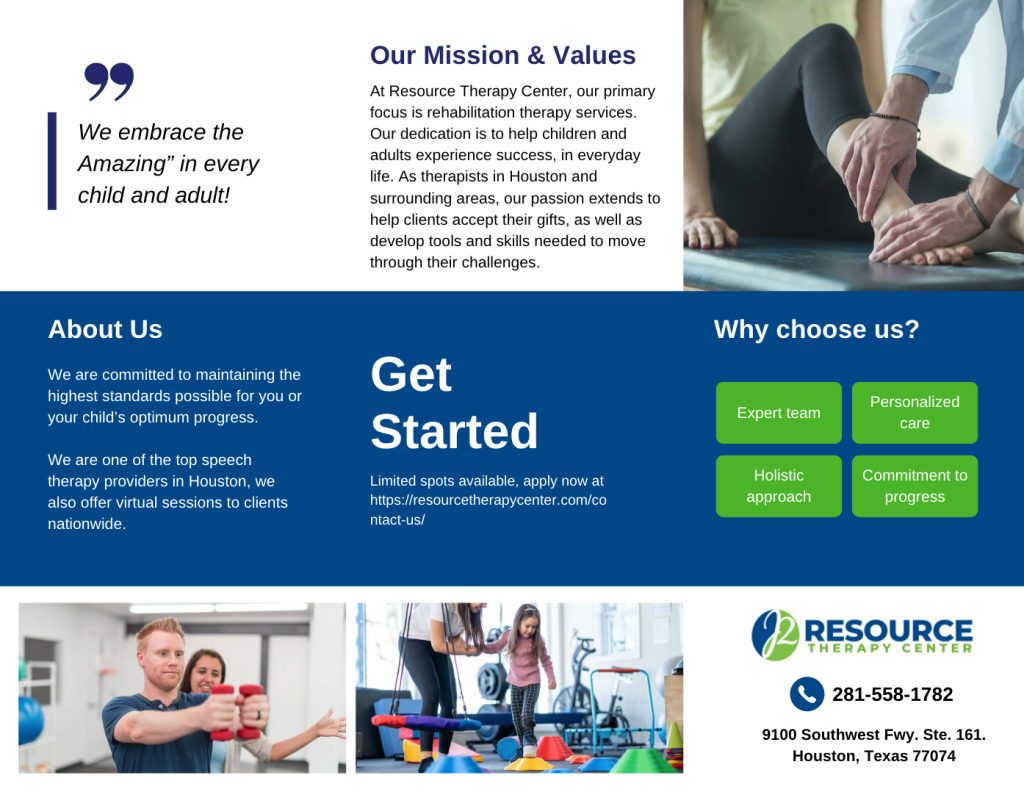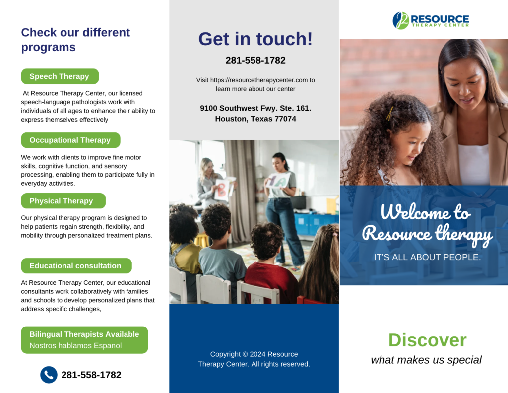 At Resource Therapy Center, we believe every child and adult deserves the opportunity to thrive. Our team of licensed therapists provides compassionate, evidence-based care designed to unlock potential, restore confidence, and improve everyday life.